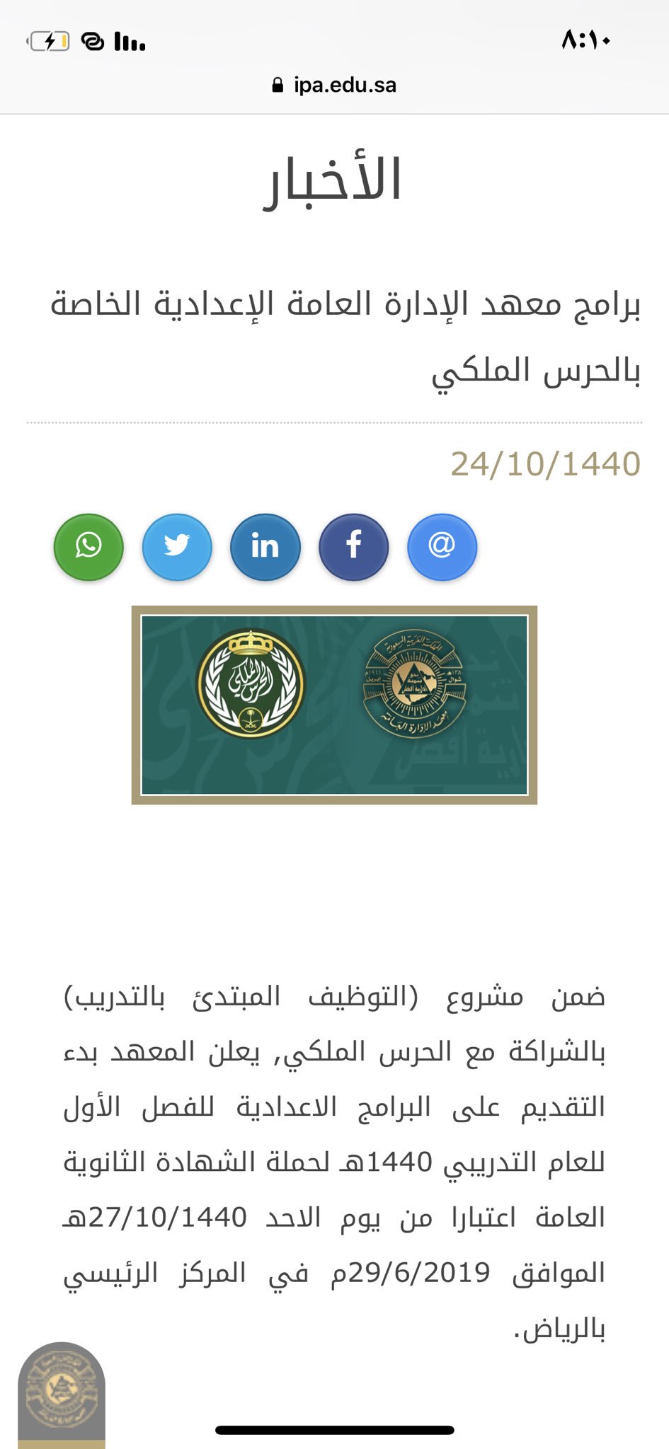 نايف بن حماد العتيبي On Twitter معهد الإدارة العامة بالشراكة مع الحرس الملكي عن بدء التقديم في البرامج الإعدادية للفصل الأول للعام التدريبي 1440هـ لحملة الشهادة الثانوية للتعيين على رتبة عريف فني