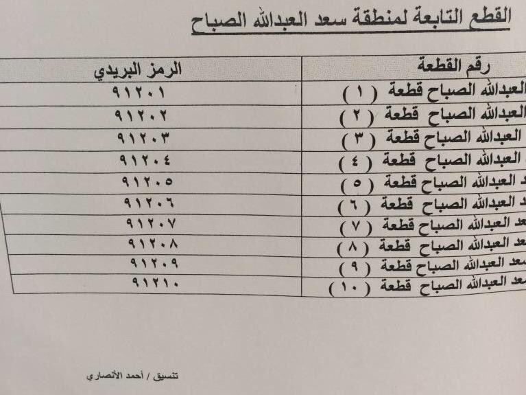 الرمز البريدي سعد العبدالله 2020 كل المكاتب والقطاعات
