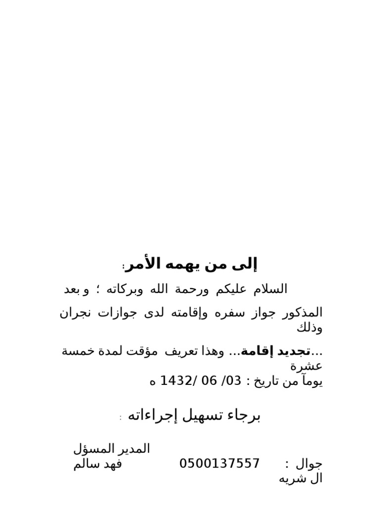 نموذج خطاب الى من يهمه الامر